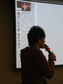 ![]() 謝醫生和牙齒衛生員細心為長者檢查 | ![]() 謝醫生和牙齒衛生員學生 | ![]() 把握等候時間請教牙科醫生工作心得 |